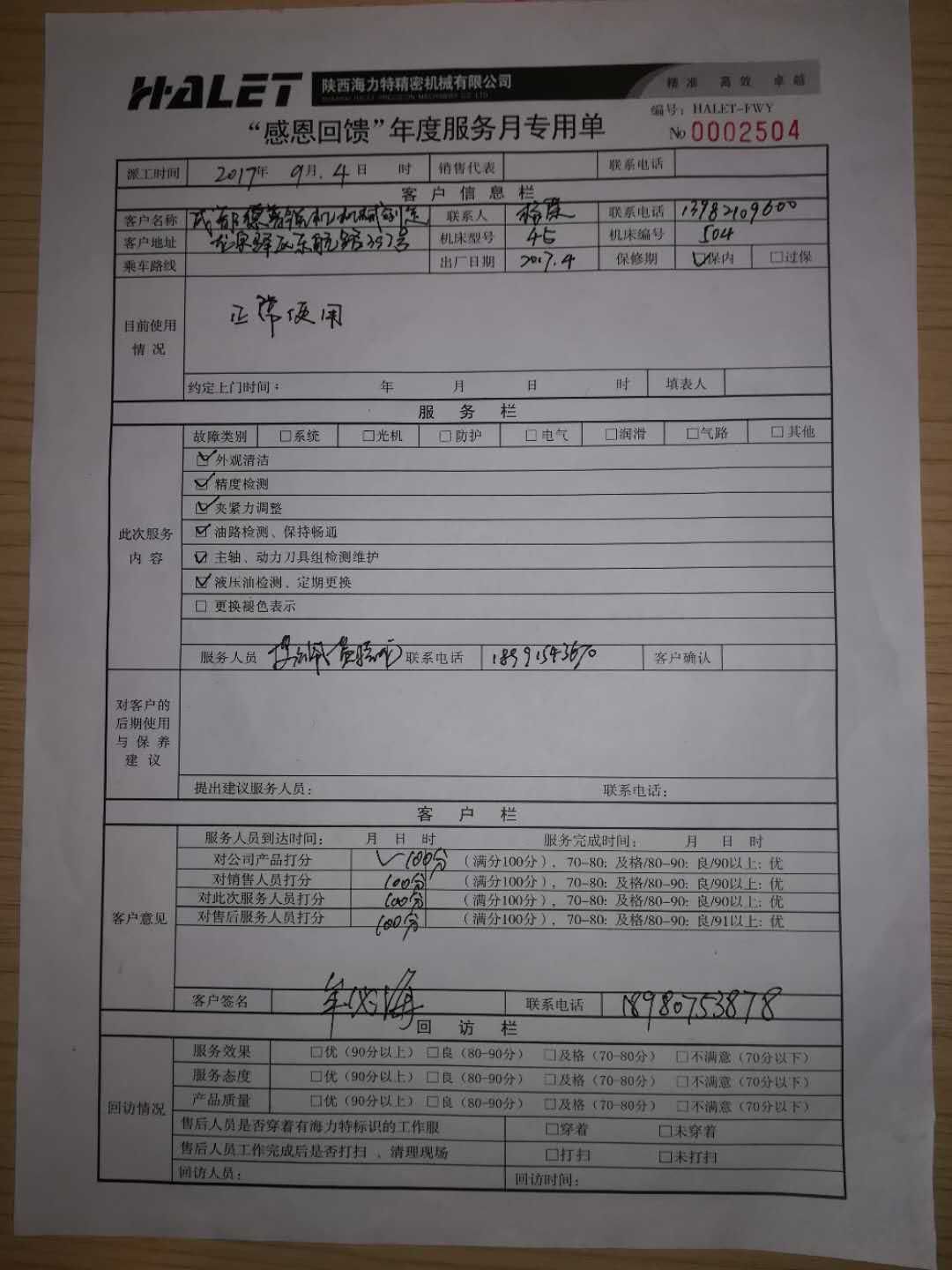 2017年9月,“感恩回饋,用心服務”海力特第三屆年度服務月拉開序幕,各組服務人員深入客戶現場認真檢修機床,用心服務客戶。真正做到讓客戶滿意,得到新老客戶的一致好評。         一家企業在外部市場上的竟爭能力,其重要的因素取決于內部的基礎管理是否到位。面對客戶,海力特人始終秉承……